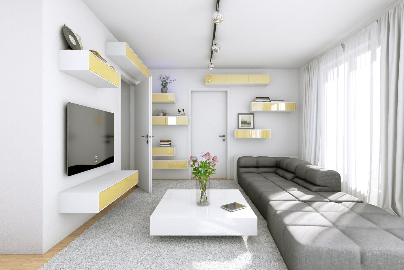 Návrh bytu pro mladou rodinu nebývá příliš snadnou záležitostí – požadavků je mnoho a prostoru málo. Byt v Hostivaři v tomto ohledu nebyl výjimkou, rozhodli jsme se proto pro spojení kuchyně, obývacího pokoje a jídelny do jednoho prostoru, který funguje jako denní zóna. Nedostatek místa na uložení věcí řeší na stěně zavěšené „kubusy“, které odlehčují a opticky zvětšují celý prostor.