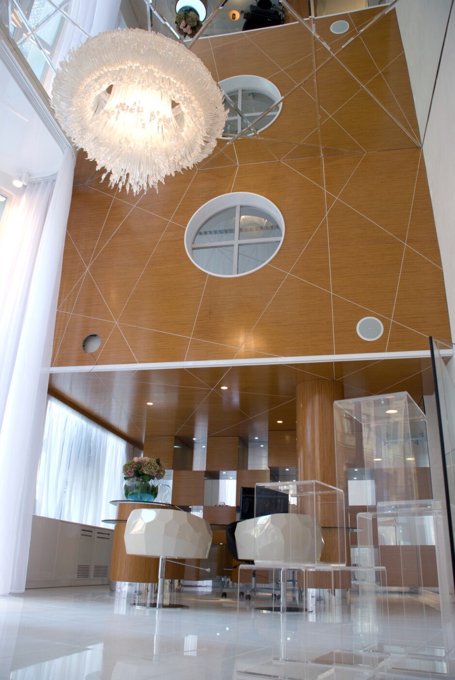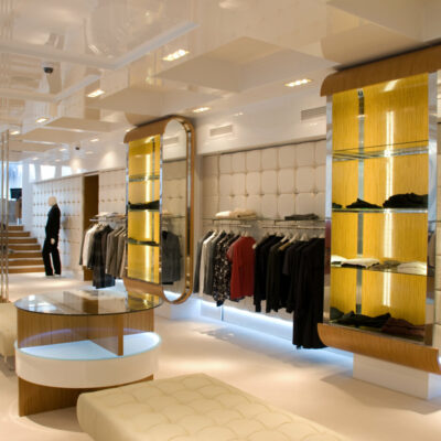 Inspirací pro koncept interiéru se stal samotný název značky – posedlost. Zaujatost detailem, provedení a materiálem. Prostor je řešen jako scéna, která navozuje pocit rozmarné nálady. Panovníkem je zde schodiště které svým leskem láká k prohlídce druhého patra a diktuje rytmus zbytku prostor – dřevěná dýha, hluboký leska laku a samet. Velké množství zrcadel odráží prostor i módní modely a znásobuje superlativní dojem z obojího.