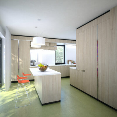 Návrh nového rodinného domu v Hostivaři se opírá o komplikovanější členěný prostor a požadavku klienta tento prostor zminimalizovat, zjednodušit a otevřít s použitím přírodních materiálů a barevných akcentů.